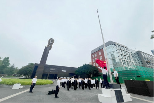 在庄严激昂的国歌旋律中,五星红旗在成都市基督教各场所冉冉升起,迎风飘扬。升旗仪式中,全体人员面向国旗行注目礼,齐唱国歌,场面庄严,共同表达对伟大祖国的热爱之情。