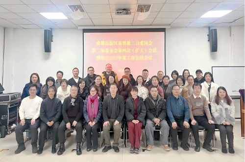 近日,成都高新区基督教三自爱国会(以下简称区爱国会)召开第二届委员会第四次(扩大)会议暨堂点2025年度工作总结会。会议由区爱国会主席赵刚牧师主持,中共成都高新区工委党群工作部相关处室负责同志出席并讲话。               会议专题学习了习近平总书记关于宗教工作的重要论述,以及《关于崇俭戒奢、正信正行的倡议》《成都高新区基督教三自爱国会关于开展“学法规、守戒律、重修为、树形象”暨“国家意识、公民意识、法治意识”教育活动的实施方案》等文件精神;审议了区爱国会2025年度收支情况,并听取了区爱国会及各堂点2025年工作总结和2026年工作计划。              会议对区爱国会及各堂点2025年度工作表示肯定。会议强调,各堂点要深化政治引领,深刻领会并准确把握习近平总书记关于宗教工作的重要论述及宗教相关政策法规,积极探索成都高新区基督教中国化实践路径。要坚持全面从严治教,加强人才队伍培养,扎实开展好“学法规、守戒律、重修为、树形象”暨“国家意识、公民意识、法治意识”教育活动。要团结信教群众,服务社会,在促进和谐稳定上作出新贡献。会议还要求各堂点切实做好春节期间消防安全及值班值守工作。