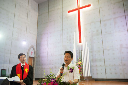 2016年5月12日,彭州教会举行了庄严、隆重的献堂典礼。省市民宗系统的领导和来自海内外的牧长同工、弟兄姊妹约1200余人齐聚圣殿,见证了这激动人心的时刻。四川省基督教协会长张贤升牧师、秘书长张健牧师因献堂当天有重要会议,特意于头天来彭表示祝贺和慰问。     2008年5月12日,一场突如其来的特大地震袭击了彭州大地。教会围墙垮塌,临时简易教堂受损。面对灾情,彭州教会弟兄姊妹不等不靠,新教堂2009年2月22日举行圣殿重建奠基仪式,2009年12月25日,工程正式破土动工。历时8年,终于竣工落成。     在感恩崇拜上,四川神学院荣休院长李栋牧师借腓1:3-7,以“同心合意,兴旺福音”为题,劝勉弟兄姊妹。席间由彭州教会100位弟兄姊妹共同完成整本手抄本《圣经》,以及翻译的由原彭县福音堂创建者何忠义牧师(Rev. G.E.Hartwell)所写反映加拿大传教士进入四川传播福音的《天府之国》(Granary of Heaven)。     如今,一座具有哥特式风格的教堂和漂亮的综合楼已矗立在彭州的东方,两幢楼建筑面积相当,共约5300平方米。福音堂共三层,主体高18米,钟楼高37米。一层为办公室和图书室,二、三层为礼拜堂。综合楼共五层,主体高17.5米,一层为教会餐厅、二层为培训教室,三、四层为学员寝室,五层为传道人住房。总平工程刚刚于5月初完成,后院建有“祷告墙”、“加利利海”和露天浸礼池。绿树成荫、鸟语花香,适宜信徒灵修祷告、与主密契。整个工程总造价约1200万,其中福音堂和综合楼土建612万,装修250万,总平110万,设备、设施约228万。完成此浩大的工程,真是超过我们所求所想。奇妙的上帝藉着政府部门和海内外的弟兄姊妹给我们带来极大的帮助和鼓舞,让我们深感“灾难虽重,主恩够用!”
