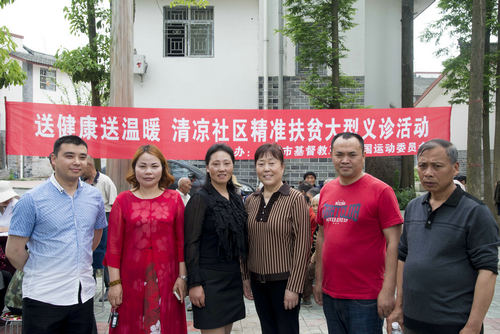 2017年5月10日上午我会副主席兼秘书长胡雅丽带领教会义诊医疗队一行10余人,再次前往都江堰柳街镇清凉社区开展送温暖送健康精准扶贫大型义诊关怀活动。此次义诊关怀活动共接诊200余人,免费发放价值7000余元药品,并现场资助了一户贫困家庭。义诊关怀活动受到当地社区及广大群众的热烈欢迎及充分肯定。当地人大、政协领导也到现场共同参与此次活动。