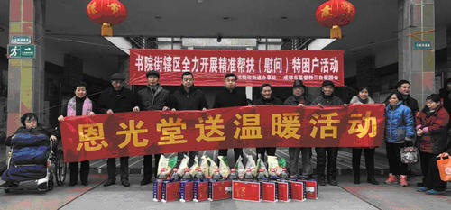 春节来临之际,四川省基督教协会会长、成都市基督教三自主席、恩光堂负责人张贤升牧师率领恩光堂教牧同工张大珍牧师、李有权牧师以及郑幸传道一行四人到成华区、龙泉驿区和锦江区开展送温暖活动。     2月12日下午,在成华区民宗局罗局长带领下,前往成华区同乐敬老院看望五十位孤寡老人,并为他们每人送上棉衣和棉鞋,老人们非常开心并表示感谢。随后又前往龙泉驿区,在严波牧师陪同下看望西河街道联络点年老的信徒,并为他们送去大米、菜油、牛奶等慰问品。     13日上午到锦江区书院街道办事处,恩光堂所在辖区慰问社区贫困群众,将大米、菜油、牛奶等生活必需品送到了10名特别困难户的手中。恩光堂信徒代表参加了此次慰问活动,深得辖区政府和社区居民的好评。同时还将慰问教堂困难信众十人。