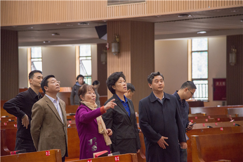 11月6日上午省委常委田向丽部长在省民宗委、市委统战部、市民宗局领导的陪同下,一行来到我会视察,参观了爱国会陈列馆和上翔堂。     在参观陈列馆的过程中,对成都市基督教在过去所做的坚持三自原则、独立自主自办教会,以及爱国爱教等方面的工作给予了充分肯定,希望继续发扬这种优良传统。同时,对陈列馆的升级改造工程提出了建设性的指导意见。     对上翔堂的牧养工作,特别是在吸引信徒回归所起到的引领作用给予口头表扬,希望加大工作力度,扩大正能量。对上翔堂在宣传省委、市委中心工作的展板前指出,要结合基督教信徒的特点,做一些简单明了的宣传,不拘一格,让信徒一看便知、及时了解党委政府为民办实事的具体举措。