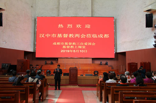 5月10日上午,汉中市基督教两会组织教牧同工20余人,前来我会及上翔堂访问和交流,市基督教三自爱国会主席张贤升牧师、副主席兼秘书长胡雅丽同工及上翔堂堂管会主任白荣发牧师及相关人员陪同接待。          汉中市基督教两会教牧同工们一行,先后参观了成都市基督教陈列馆和上翔堂,对基督教传入成都的历史和基督教为成都的社会、经济、文化建设所作出的积极贡献进行了了解,对陈列馆的规模给予了赞许。在参观上翔堂和座谈交流中,对市基督教三自爱国会和上翔堂,在场所建设及管理,宗教活动开展,“四进”活动推进,财务规范化管理等情况进行了沟通和交流。