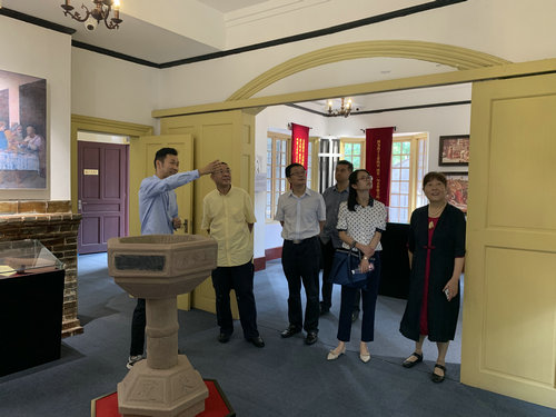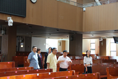 7月18日上午,四川省纪委监委第四纪检监察室二级调研员陈利民和四川科技职工大学组织人事处干部喻兴华,在成都市委统战部副部长、市民宗局局长田野,市民宗局办公室主任丁长贵等领导的陪同下前来我会调研。我会主席张贤升牧师、副主席兼秘书长胡雅丽同工、副主席兼上翔堂堂管会主任白荣发牧师及工作人员等陪同接待。           领导们一行先参观了基督教上翔堂,了解了教堂建设、教会活动、聚会管理、信徒状况等教堂基本情况。随后参观了成都市基督教陈列馆,对基督教传入成都的历史,基督教为成都的社会、经济、文教、卫生、医疗等事业所作出的积极贡献,对我会坚持三自原则、爱国爱教、服务社会等事工进行了了解,领导们一行对我市基督教开展的各项具体工作给予了肯定,尤其是在文化建设和文物楼保护等方面起到了一定的示范引领作用。