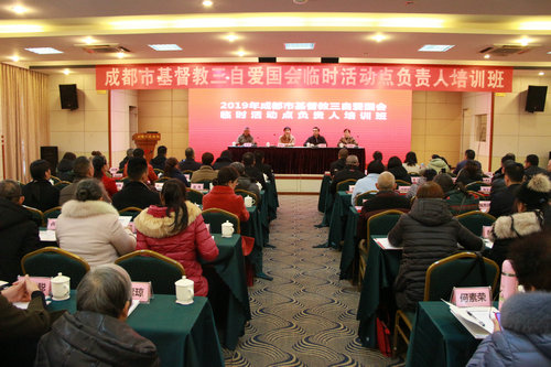 成都市基督教三自爱国会于11月26日至28日在新都区举办了为期3天的2019年基督教临时活动地点负责人培训班,全市新批准35处基督教临时活动地点负责人参加了培训,市民宗局宗教二处全程莅会指导。     本次培训班开设了《基督教教规教义》、《基督教中国化方向》、《宗教相关政策法规》和《教会管理》等课程。培训总结会上,市民宗局宗教二处周家强处长强调要准确把握宗教临时活动地点的定位和性质,严格依法依规接受相关部门的管理和监督,高度重视与当地民宗局、街道和社区的协调、沟通等相关工作,确保聚会活动正常有序开展,满足信教群众宗教生活需要。           通过培训,学员们提升了依法依规管理临时活动地点的认知水平和能力,正确认识和理解坚持三自道路,明白了基督教中国化的重要意义,纷纷表示坚决拥护党和政府的正确领导,坚持好基督教中国化方向,秉承爱国爱教爱家乡的理念,一个合格基督徒就应该是一个遵纪守法的好公民,一定要在法律法规允许的范围内开展宗教活动。