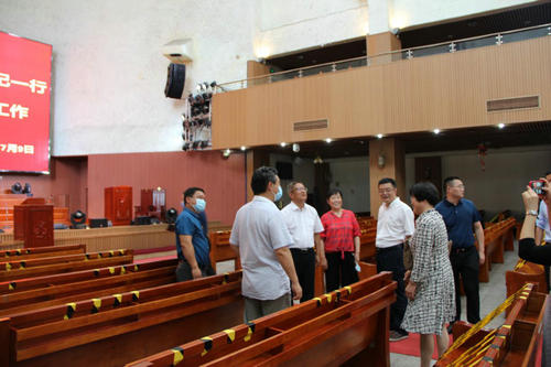 7月9日,重庆市民族宗教委书记李中武一行8人,在四川省民族宗教委主任罗振华、副主任马飞,成都市民宗局局长田野等领导陪同下,到成都市基督教调研,我会主席张贤升牧师、副主席兼秘书长胡雅丽同工等全程陪同。                         调研客人一行先参观了基督教上翔堂,对教堂建设、教会管理、复工复产中恢复礼拜的措施等情况进行了深入交流和沟通,对上翔堂的具体举措给予肯定。随后在参观成都市基督教陈列馆的过程中,对基督教传入成都的历史,特别是对成都的社会、经济、文教、卫生、医疗等事业所作出的积极贡献,以及坚持三自原则、爱国爱教、服务社会等事工进行了深入了解。