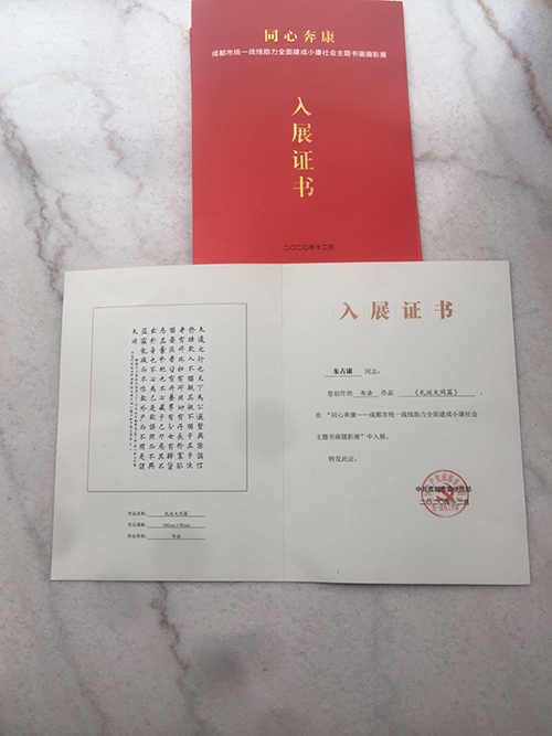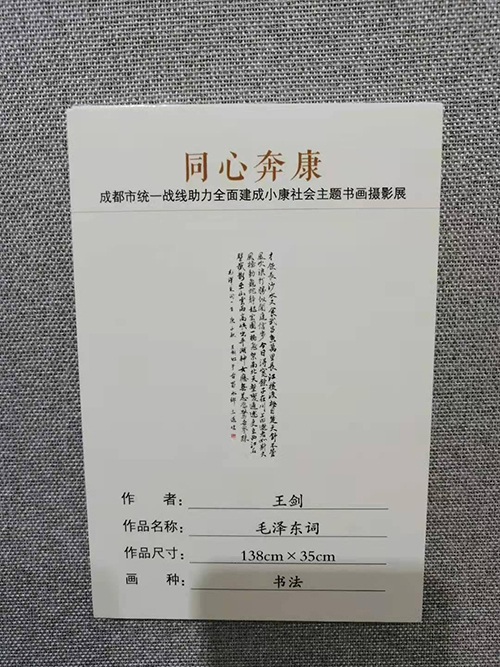 ....2020年12月29日至2021年1月6日,由中共成都市委统战部主办的“同心奔康”、成都市统一战线助力全面建成小康社会主题书画摄影展,在四川福宝美术馆(新馆)隆重展出。都江堰市基督教福音书画社有六幅作品入选参展,分别是社长朱占康,书画社成员张源、徐伟、王剑、曾生仁的5幅书法作品,瞿飞的1幅国画作品。