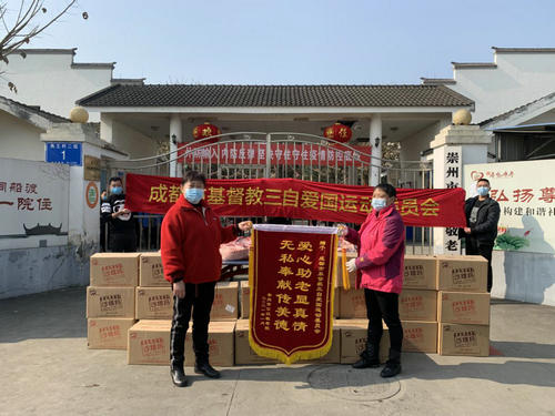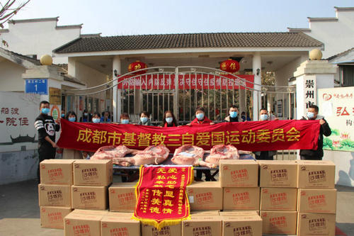 1月22日,市基督教三自爱国会副主席兼秘书长胡雅丽携工作人员及崇州市教会同工前往崇州市公议敬老院开展迎新春送温暖关爱活动。因疫情期间敬老院封闭式管理,本次活动取消了联欢表演节目,为敬老院送去两头猪和糕点等慰问品,共计价值1.8万余元。                 该活动是我会敬老爱老活动之一,我们将持续坚持。本次活动得到了院方充分肯定及老人们的热烈欢迎并为我会送上锦旗一幅“爱心助老显真情 无私奉献传美德”,以感谢成都市基督教爱国会对敬老院的关爱。