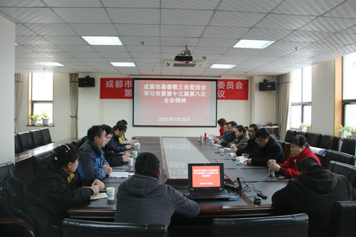 1月26日,成都市基督教三自爱国会召开专题会议,传达学习市委十三届八次全会精神,研究贯彻落实具体措施。市基督教三自爱国会主席张贤升牧师主持会议并讲话,副主席兼秘书长胡雅丽、上翔堂、恩光堂教职人员及爱国会全体工作人员参加。         张贤升牧师对学习贯彻全会精神提出以下要求:一是全市基督教界要把学习贯彻全会精神作为当前和今后一个时期的重要政治任务,主动作为,不断增强“四个意识”、坚定“四个自信”、做到“两个维护”,自觉立足新发展阶段找位置强担当做贡献,努力为推动市委决策部署落地落实做出新的更大贡献。二是“双暂停”期间严格执行《成都市宗教界关于做好春节期间新冠肺炎疫情防控的倡议书》,加强防疫物资储备,做好信教群众的引导工作。