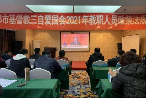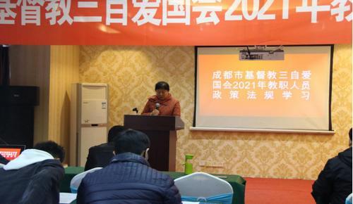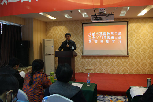 3月4日至5日,组织全市教职人员40余人在眉山宏帛酒店召开了2021年教职人员学习会,市民宗局宗教二处丁长贵处长随行指导。。            会议由副主席莫高荣牧师主持,大家奏唱唱国歌,集体观看了十三届全国人大四次会议开幕会直播,我会副主席兼秘书长胡雅丽传达了《习近平:学党史悟思想办实事开新局以优异成绩迎接建党一百周年》《中国共产党统一战线工作条例》《宗教教职人员管理办法》的重要精神。随后,三名教职人员代表就学习内容进行了交流发言。     我会主席张贤升牧师在总结时提出三点要求:一是要进一步加强学习。多读书,读好书,以史为鉴,以史为镜,学史明理、学史增信、学史崇德、学史力行;二是要进一步发挥教牧同工联系广的积极作用,团结一切可以团结的力量,求同化异,凝聚共识,以中华民族共同体、人类命运共同体为己任、将我们的教会性和社会性结合起来,牧养好教会,服务好社会,为成都建设新发展理念公园城市以及全市社会发展,国家社会大局贡献力量和智慧;三是进一步明确全市教牧同工要勇于担当,主动作为,切实起到模范带头作用,积极落实《条例》《办法》精神,维护自身合法权益,反映自身诉求,在法律法规的范围内积极主动开展教会各项活动,使教会事工跃上新台阶。为大运会的顺利开展,成德眉资同城化发展、成渝双城经济圈建设、建党一百周年展示我们基督精兵的风采。                    最后,市民宗局二处丁长贵处长要求全市基督教界要继续做好常态化疫情防控工作,以及安全维稳工作和今年的重点工作。