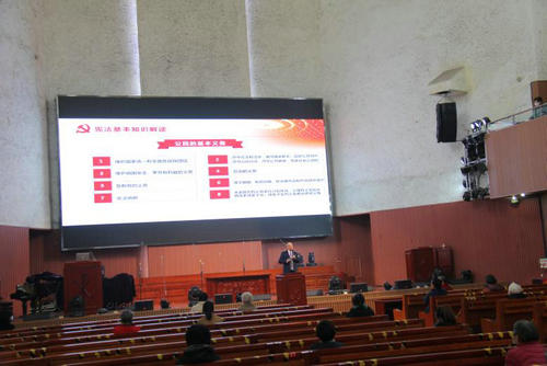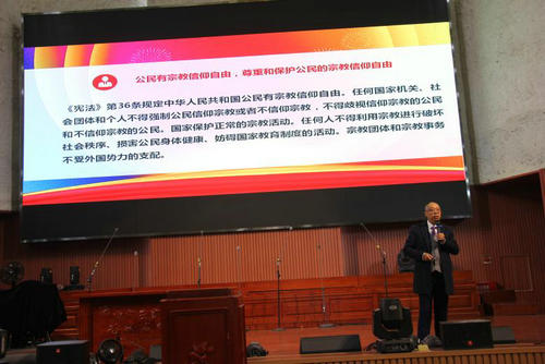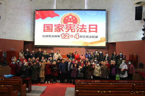 2021年12月4日是第八个国家宪法日,也是第四个“宪法宣传周”,为认真贯彻落实市民宗局关于开展好“2021年成都市‘宪法宣传周’工作方案”文件精神要求,基督教上翔堂开展了“12.4”宪法日宣传活动,旨在提高全体教牧同工和信教群众的学法、用法意识。          基督教上翔堂邀请了省市优秀律师李祝辉律师讲解了《宪法基本知识解读》及对宗教自由政策进行了专题的培训,通过李律师耐心细致的授课、学习宪法和实际的案例让广大信徒明白作为中华人民共和国公民的权利和义务,遵照国家法律、法规和基督教教规、教义,做爱国爱教、荣神益人的好公民。          为配合此次宣传活动,青羊区民宗局特地制作横幅下发给辖区宗教场所“弘扬宪法精神、共建法制青羊”,基督教上翔堂制作了横幅“坚定宪法自信、增强宪法自觉”,并将两条横幅悬挂在入口醒目处,加上院内《宗教事务条例》《四川省宗教事务条例》《成都市宗教场所管理办法》等,起到了强化宣传,提升认识的作用。     此次宪法日宣传活动提升了教职人员对宪法及法律法规的认识,上翔堂将严格规范化管理,切实推进宗教场所“五进”工作,保障场所管理有序、活动正常开展和信徒宗教生活和谐稳定,让基督教上翔堂成为爱国爱教的践行者、中华文化的传承者和祖国家乡的建设者。