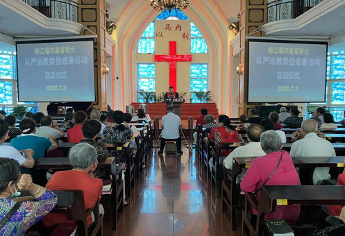 ——都江堰市基督教举行从严治教崇俭戒奢活动启动仪式   7 月 3 日,都江堰市基督教三自爱国会在荣光堂举行“从严治教崇俭戒奢活动启动仪式”,爱国会主席张志平牧师宣读了《都江堰市基督教三自爱国运动委员会从严治教崇俭戒奢活动实施方案》。爱国会委员,荣光堂堂管会成员,聚会点负责人,工作人员和信徒代表 100 余人参加启动仪式。