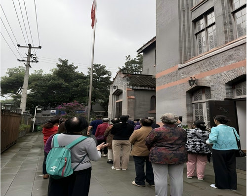 在庄严激昂的国歌旋律中,五星红旗在成都市基督教各场所冉冉升起,迎风飘扬。升旗仪式中,全体人员面向国旗行注目礼,齐唱国歌,场面庄严,共同表达对伟大祖国的热爱之情。