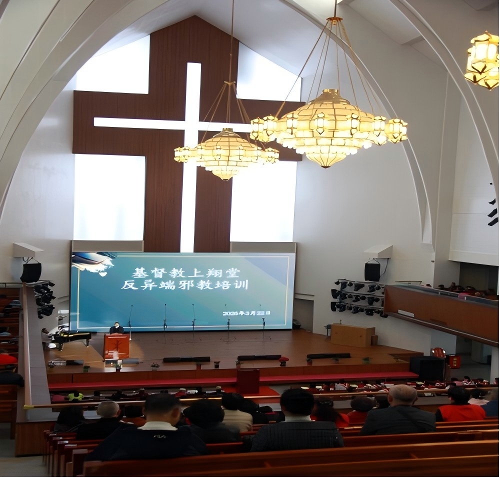 近日,基督教上翔堂利用崇拜时间,举行反异端邪教宣传活动,共计500余信教群众参加了本次培训活动。            本次活动基督教上翔堂教职人员分析了目前中国基督教内出现的“新天地教会”“门徒会”“三班仆人”等异端邪教,呼吁信徒要认识极端宗教思想对家庭、社会和教会的危害,树立正确的人生观、价值观,坚决抵制极端宗教思想,要明是非、辨真理,自觉抵制和远离极端宗教思想,了解掌握党和国家的宗教政策,学习宗教法律法规,培育现代文明生活方式,始终保持清醒的头脑,以实际行动践行社会主义核心价值观,共同维护社会和谐稳定。